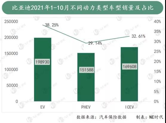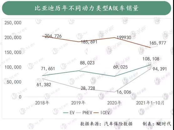 今年前十個月,比亞迪52萬新車銷量中,EV、PHEV、ICEV分別占比38.25%29.14%32.61%,這應該是目前體量最大,電動化程度最高的車企。 從歷年數(shù)據(jù)來看,比亞迪除了電動化程度越來越高,APHEV車型今年的增長速度也非常驚人,相較于去年全年,增長近5倍。相比之下,同級別的燃油車卻出現(xiàn)了下滑。