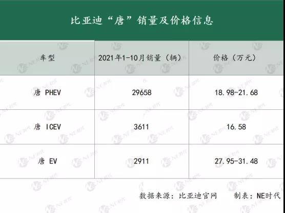 還有一款比較典型的就是宋Plus,插混版前十個月銷量比燃油版還多出將近900臺。前者價格區(qū)間在14.68-19.98萬元,后者11.58-14.38萬元之間,就汽車保險數(shù)據(jù)來看,插混版本主要起量的是14-16萬之間的這兩款,這跟燃油版的高配版差價非常小,所以在價格上還是非常有優(yōu)勢的。 不僅是A級車,在比亞迪體系里面,B級車唐PHEV低配版與燃油版車型價差也拉得很近,并且以高性價比完勝EV版銷量。