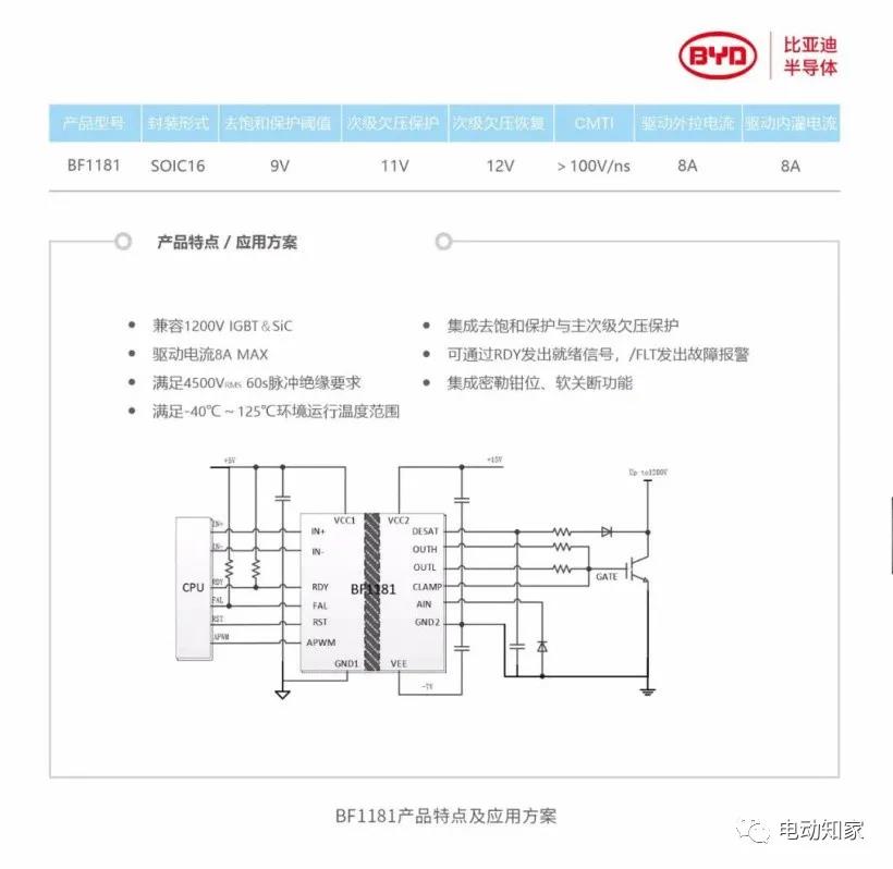 來自電動家消息,12月14日,比亞迪半導(dǎo)體在先前研發(fā)成果的基礎(chǔ)上,成功自主研制并量產(chǎn)1200V功率器件驅(qū)動芯片BF1181,今年12月大規(guī)模生產(chǎn)并向各大廠商供貨。